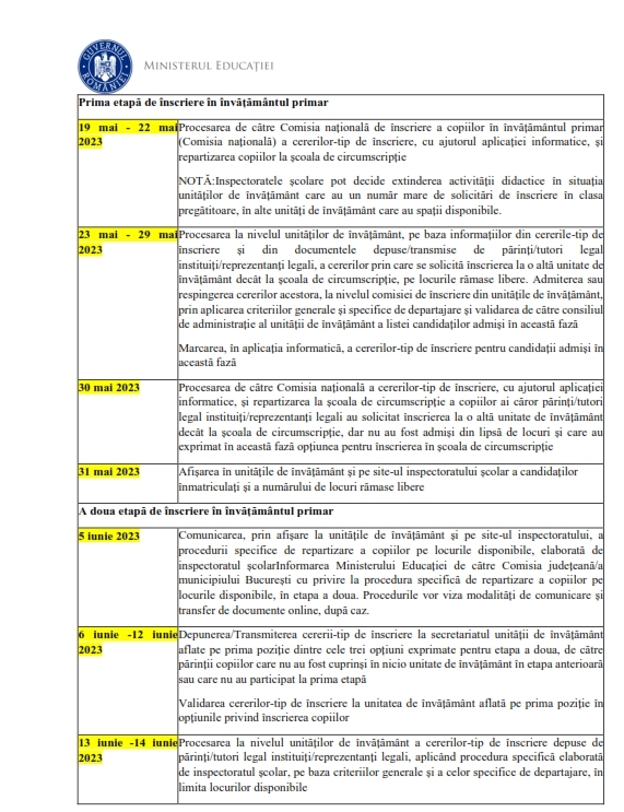 inclusiv) – sunt înscriși obligatoriu în clasa pregătitoare, la